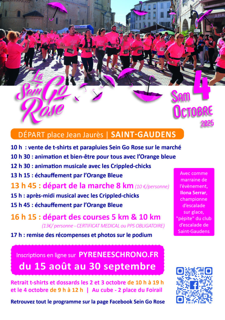 Dans le cadre de la campagne nationale Octobre Rose, destinée à sensibiliser au dépistage du cancer du sein et à soutenir la recherche, la Sein Go Rose vous donne rendez-vous le samedi 4 octobre 2025 pour une marche et un trail urbain, dans une ambiance solidaire et conviviale.